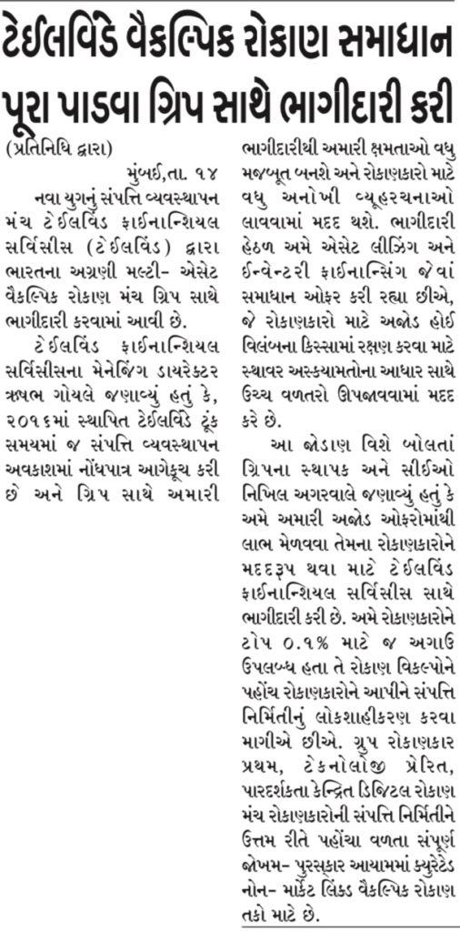 टेलविंड देगी वैकल्पिक निवेश समाधान ग्रिप के साथ साझेदारी